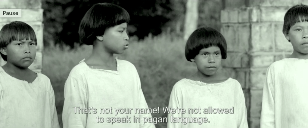 The first image is after the child (one of the orphans from the Rubber’s massacres) says his name in his language. He was indoctrinated and not allowed to express his way of seeing the world.